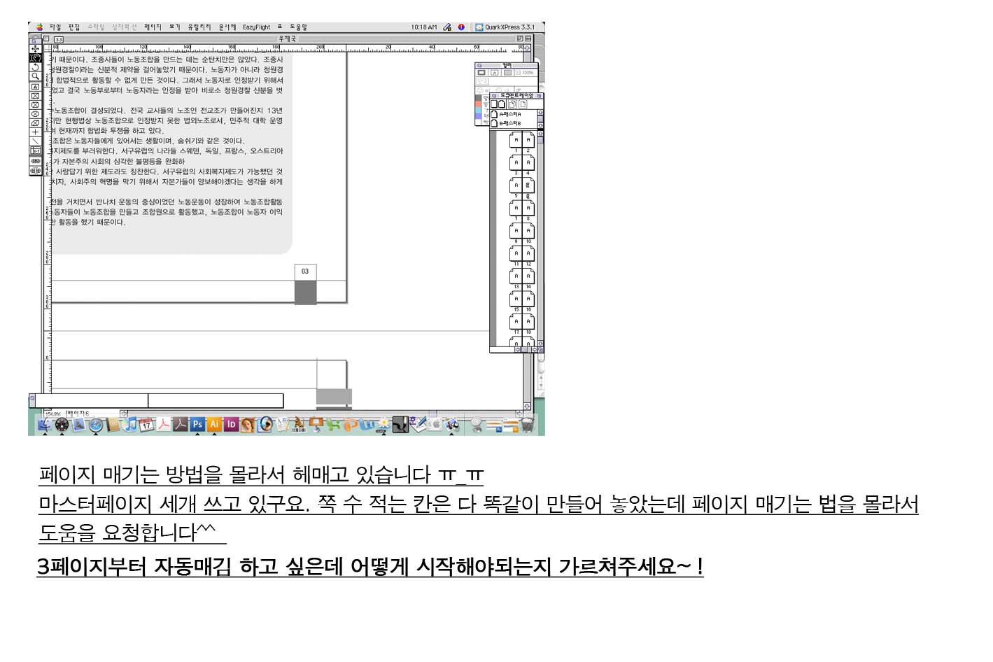 자동매김이 잘되었다면 도큐멘트 팔레트의 3페이지에 *모양이 생겼을 것입니다.